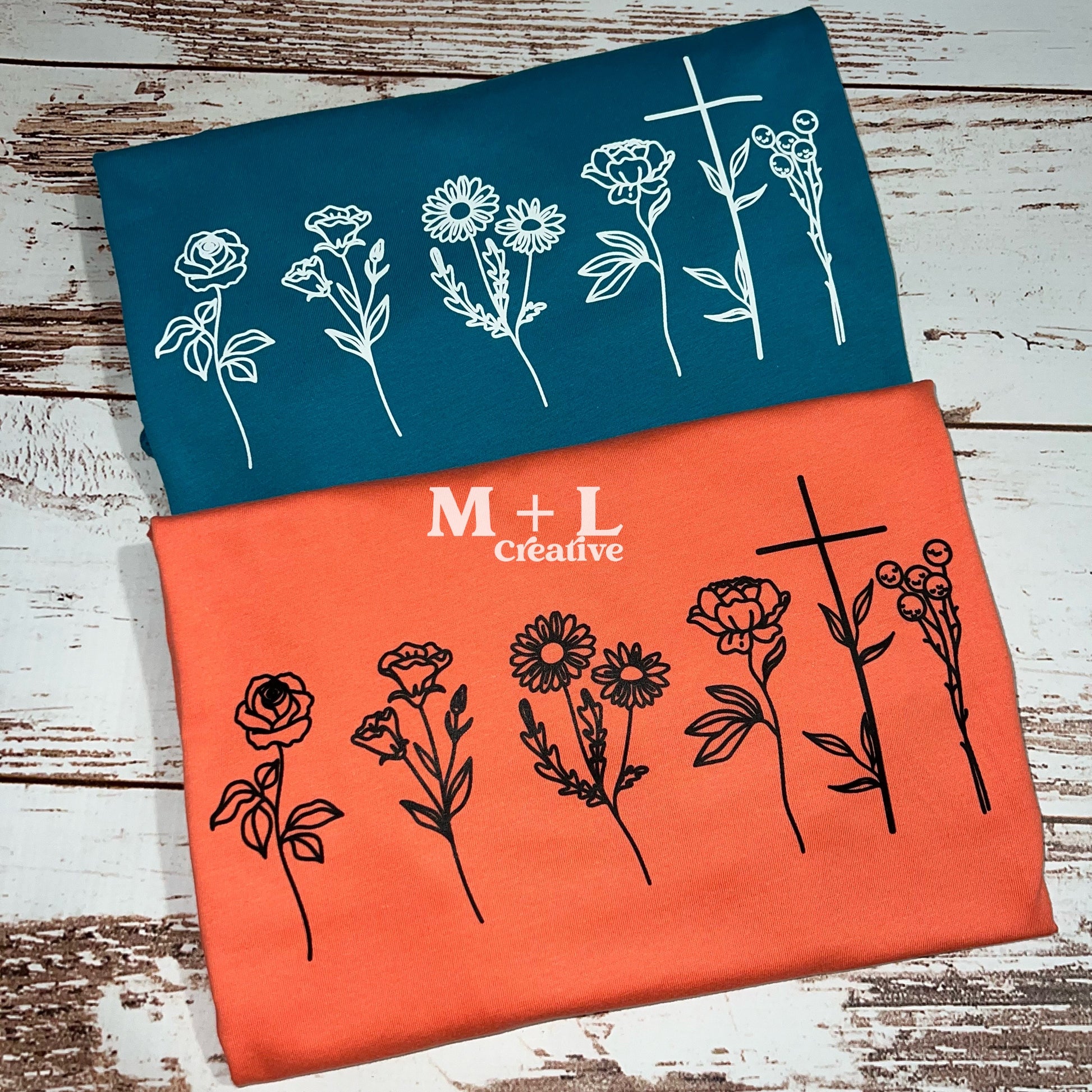 Botanical Flower Cross Black Ink